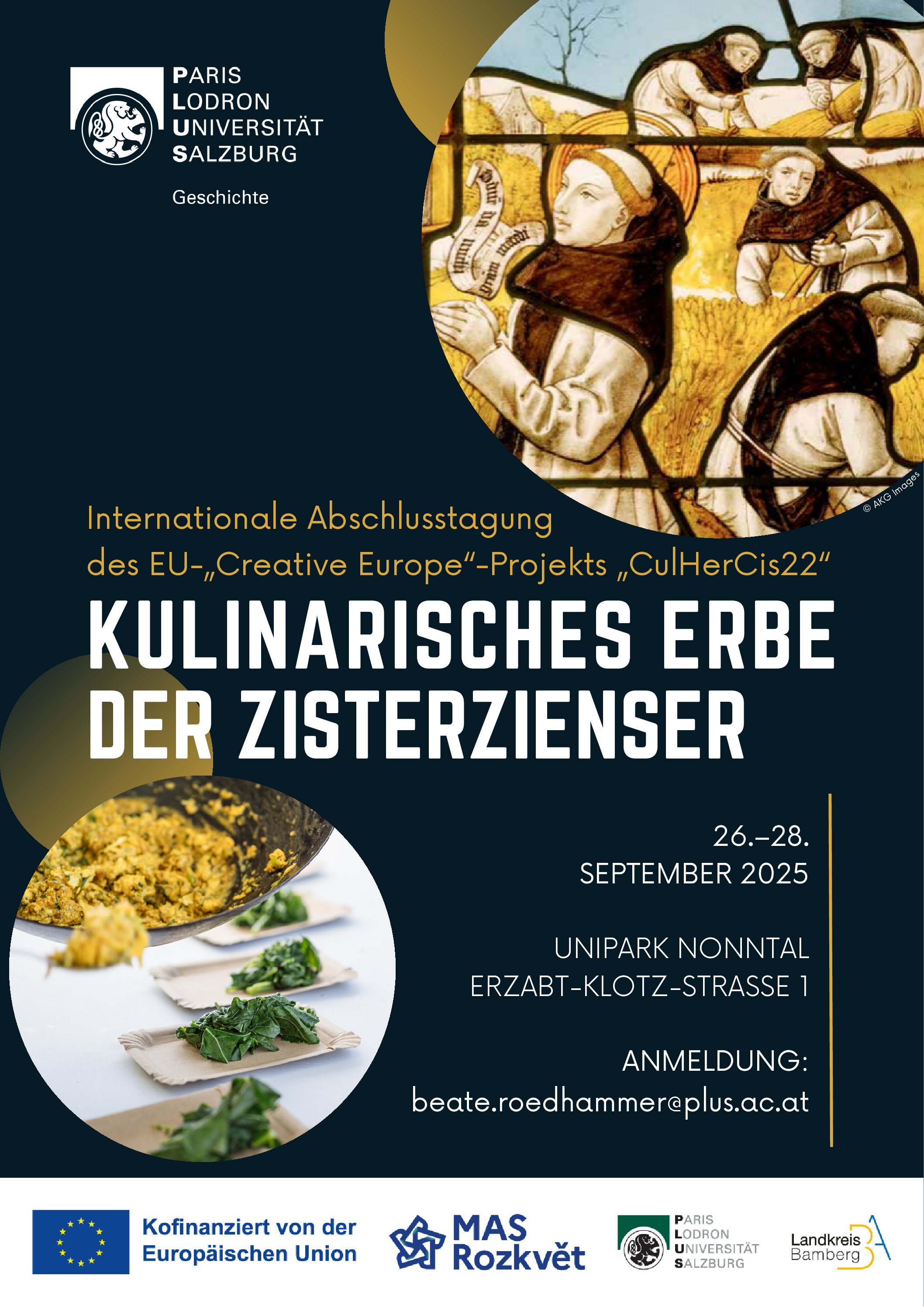 Im gleichnamigen Kooperationsprojekt zwischen Deutschland, Tschechien und Österreich wurde seit 2023 das kulinarische Erbe des Zisterzienserordens in Mitteleuropa erforscht und einer breiten Öffentlichkeit zugänglich gemacht. In der gemeinsamen Abschlusstagung sollen die Projektergebnisse präsentiert und weiterführende Perspektiven aufgezeigt werden. Dazu werden Panels zur Zisterziensergeschichte, zur Ernährungsgeschichte sowie zu Kulturerbe und Vermittlung veranstaltet. Zu letzterem Themenkomplex finden auch Workshops von Spezialist:innen statt.